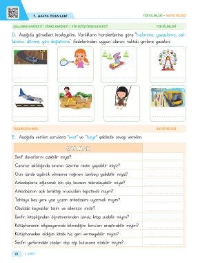 E. Aşağıda verilen sorulara ‘‘evet’’ ve ‘‘hayır’’ şeklinde cevap verelim.