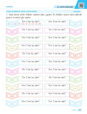 A. Sözel olarak verilen ifadeleri toplama işlemi yapalım. Bu ifadeleri çarpma işlemi şeklinde