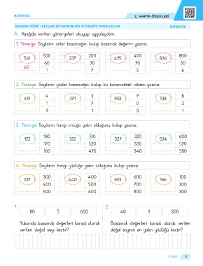 2. Yönerge: Sayıların yüzler basamağını bulup bu basamaktaki rakamı yazınız.