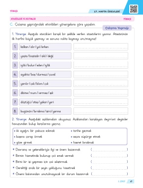 C. Çalışma yaprağındaki etkinlikleri yönergelere göre yapalım.