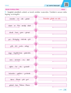 D. Aşağıdaki sözcüklerle anlamlı ve kurallı cümleler oluşturalım. Cümlelerin sonuna nokta