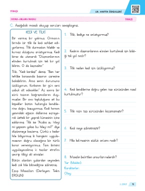 C. Aşağıdaki masalı okuyup soruları cevaplayınız.