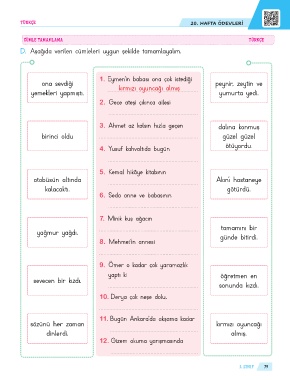 D. Aşağıda verilen cümleleri uygun şekilde tamamlayalım.