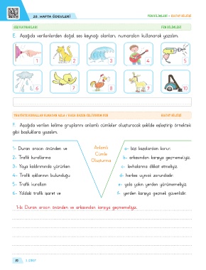 F. Aşağıda verilen kelime gruplarını anlamlı cümleler oluşturacak şekilde eşleştirip örnekteki