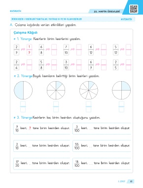 2. Yönerge:Boyalı kısımların belirttiği birim kesirleri yazalım.