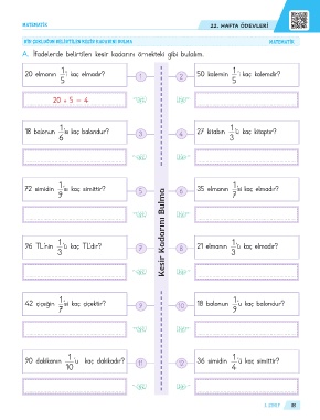 A. İfadelerde belirtilen kesir kadarını örnekteki gibi bulalım.