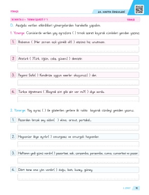 D. Aşağıda verilen etkinlikleri yönergelerden hareketle yapalım.