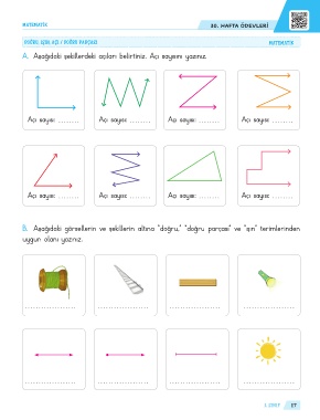 A. Aşağıdaki şekillerdeki açıları belirtiniz. Açı sayısını yazınız.