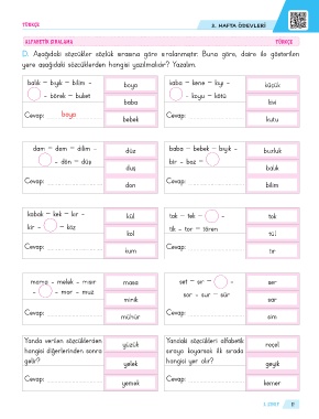 D. Aşağıdaki sözcükler sözlük sırasına göre sıralanmıştır. Buna göre, daire ile gösterilen