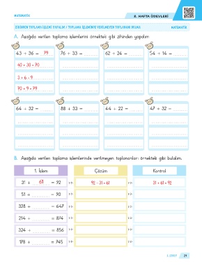 B. Aşağıda verilen toplama işlemlerinde verilmeyen toplananları örnekteki gibi bulalım.