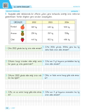 B. Aşağıdaki sıklık tablolarında bir çiftçinin yıllara göre tarlasında ürettiği ürün miktarları