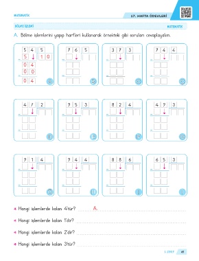 A. Bölme işlemlerini yapıp harfleri kullanarak örnekteki gibi soruları cevaplayalım.
