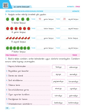 Page 79 - 3. Sınıf Föy Föy Hafta Sonu Ödevleri