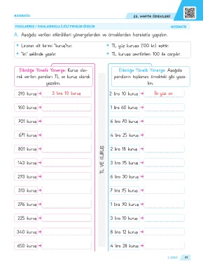 PARALARIMIZ / PARALARIMIZLA İLGİLİ PROBLEM ÇÖZELİM MATEMATİK
