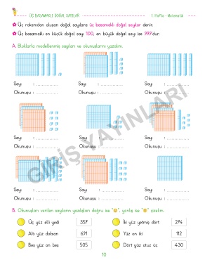 A. Bloklarla modellenmiş sayıları ve okunuşlarını yazalım.