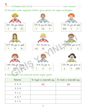 D. Okunuşları verilen sayılardaki harflerin yerine gelecek olan sayıları işaretleyelim.