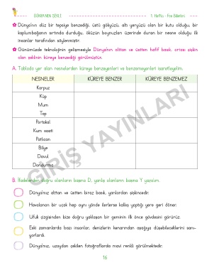 Page 16 - 3. SINIF HAFTA HAFTA ETKİNLİKLER 1. FASİKÜL - GİRİŞ YAYINLARI