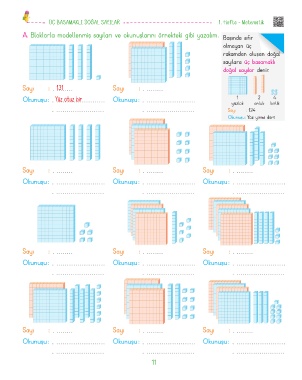 A. Bloklarla modellenmiş sayıları ve okunuşlarını örnekteki gibi yazalım. Başında sıfır