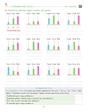 B. Abaküslerde gösterilen sayıları örnekteki gibi yazalım.