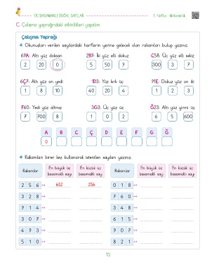 Okunuşları verilen sayılardaki harflerin yerine gelecek olan rakamları bulup yazınız.