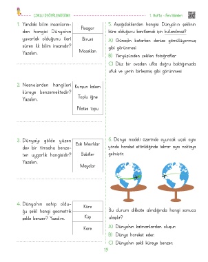 1. Yandaki bilim insanların- 5. Aşağıdakilerden hangisi Dünya’nın şeklinin