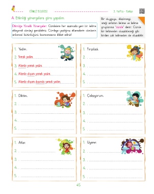 A. Etkinliği yönergelere göre yapalım. Bir duyguyu, düşünceyi,