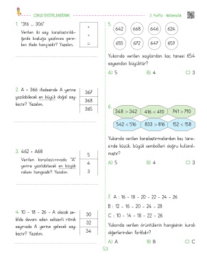 ÇOKLU DEĞERLENDİRME 3. Hafta - Matematik