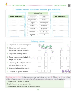 ÜNİTE DEĞERLENDİRME 3. Hafta - Fen Bilimleri