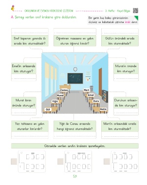A. Şemayı verilen sınıf krokisine göre dolduralım. Bir yerin kuş bakışı görünüşünün