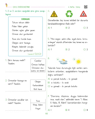 Page 67 - 3. Sınıf Hafta Hafta Biçimlendirici Değerlendirme Fasikül - 1