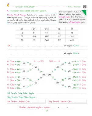 A. Yönergeleri takip ederek etkinlikleri yapalım. Birler basamağında 1, 3, 5, 7, 9