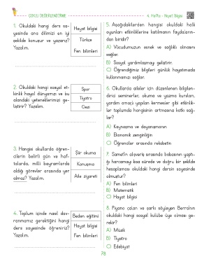 1. Okuldaki hangi ders sa- Hayat bilgisi 5. Aşağıdakilerden hangisi okuldaki halk
