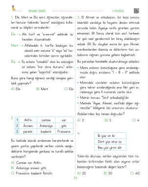 Efe → Altı harf ve “e-sa-ret” şeklinde üç etmemişti. (II) Sonuç olarak tüm sınıf, herkesin