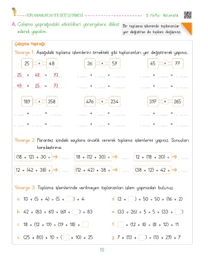 A. Çalışma yaprağındaki etkinlikleri yönergelere dikkat Bir toplama işleminde toplananlar