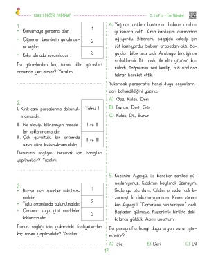 Page 18 - 3. Sınıf Hafta Hafta Biçimlendirici Değerlendirme Fasikül - 2