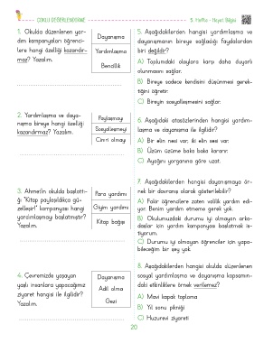 1. Okulda düzenlenen yar- 5. Aşağıdakilerden hangisi yardımlaşma ve