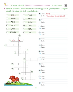 A. Aşağıdaki sözcüklerin zıt anlamlılarını bulmacada uygun olan yerlere yazalım. Yazdığımız