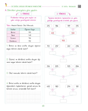 Problemleri tabloya göre sayıları en Toplama işlemlerini toplananları en yakın