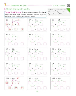 olduğu gibi verilen diğer toplama işlemlerini, toplanan sayılardan toplama işlemi yapabiliriz.