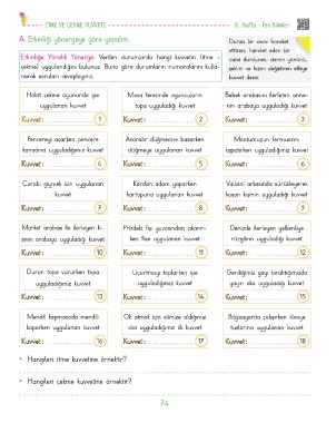Etkinliğe Yönelik Yönerge: Verilen durumlarda hangi kuvvetin (itme - cismi durduran; cismin yönünü,