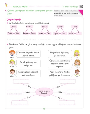 A. Çalışma yaprağındaki etkinlikleri yönergelere göre ya- İnsanların para kazanıp yaşamlarını