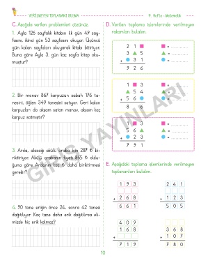 C. Aşağıda verilen problemleri çözünüz. D. Verilen toplama işlemlerinde verilmeyen