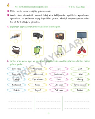 A. Eşyalardan geçmiş zamanlarda kullanılanları işaretleyelim.