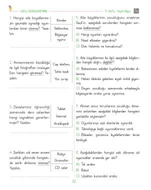 ÇOKLU DEĞERLENDİRME 9. Hafta - Hayat Bilgisi