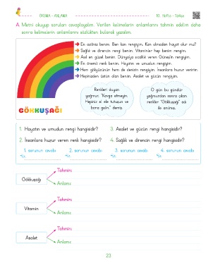 A. Metni okuyup soruları cevaplayalım. Verilen kelimelerin anlamlarını tahmin edelim daha