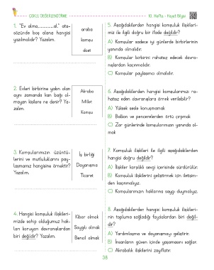 2. Evleri birbirine yakın olan Akraba 6. Aşağıdakilerden hangisi komşularımızı ra-
