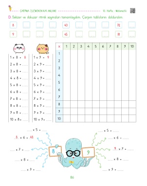 D. Sekizer ve dokuzar ritmik saymaları tamamlayalım. Çarpım tablolarını dolduralım.
