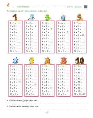 A. Aşağıdaki çarpım tablosu listesini dolduralım.