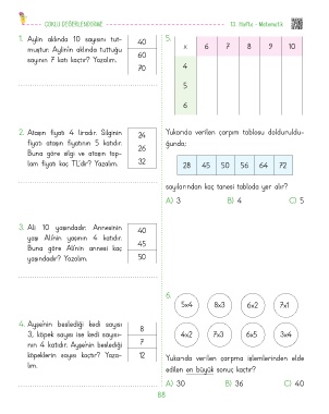 ÇOKLU DEĞERLENDİRME 13. Hafta - Matematik