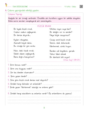 8. Şiirdeki hangi sözcüklerin eş anlamlısı vardır? (Eş anlamlılarını da yazınız.)